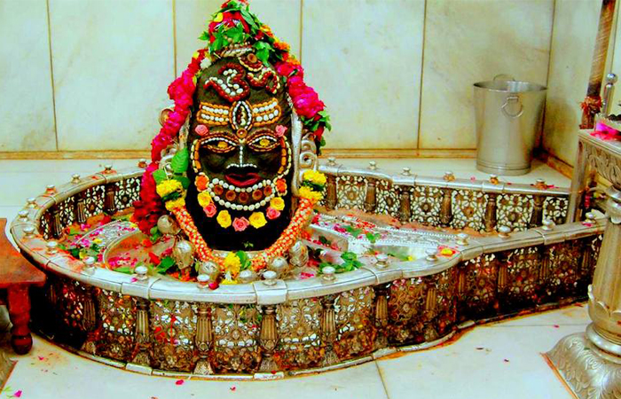 The idol of Mahakaleshwar is known to be dakshinamurti, which means that it is facing the south. This is a unique feature, upheld by the tantric shivnetra tradition to be found only in Mahakaleshwar among the 12 Jyotirlingas. The idol of Omkareshwar Mahadev is consecrated in the sanctum above the Mahakal shrine. The images of Ganesh, Parvati and Karttikeya are installed in the west, north and east of the sanctum sanctorum. To the south is the image of Nandi, the vehicle of Lord Shiva. The idol of Nagchandreshwar on the third storey is open for darshan only on the day of Nag Panchami. The temple has five levels, one of which is underground. The temple itself is located in a spacious courtyard surrounded by massive walls near a lake. The shikhar or the spire is adorned with sculptural finery. Brass lamps light the way to the underground sanctum. It is believed that prasada (holy offering) offered here to the deity can be re-offered unlike all other shrines.